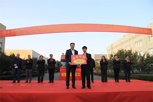 随后,吕继贤董事长向浩信机械总经理颁发完成40亿匾牌;向集团营销公司颁发冲刺50亿匾牌。