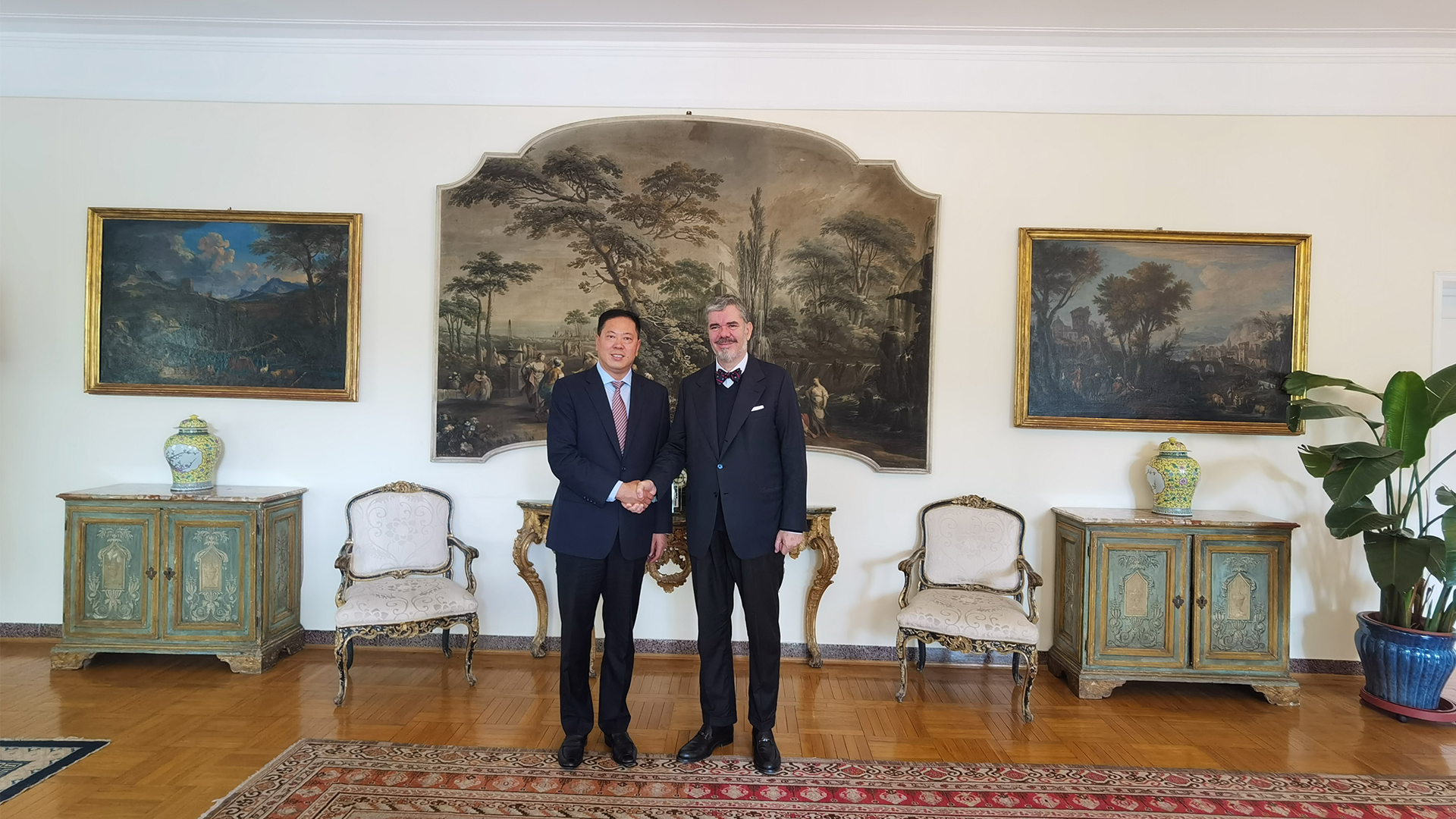 10月6日,浩信集团吕继贤董事长与意大利驻华大使安博思先生在北京意大利使馆进行座谈交流。